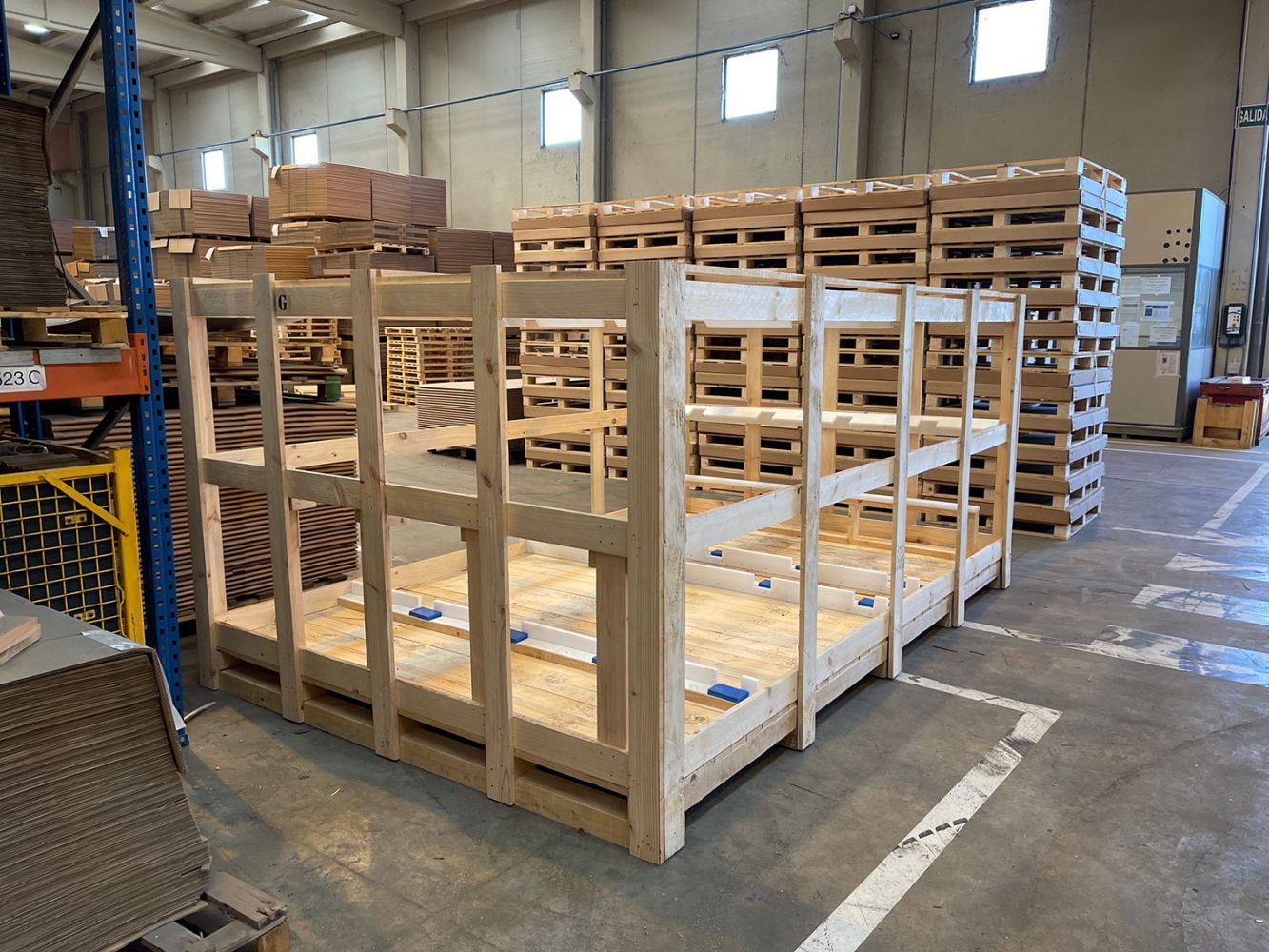 Fabricación de embalajes de madera específicos, para piezas de automoción